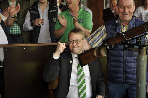 Der letzte Vogel des Tages konnte sich also vor den Lauf wagen und der amtierende König Rotger Tönnis begab sich für seinen Ehrenschuss an das Gewehr. Seine Kameraden von "Einfach nur'n Zug" jubelten Ihm vom Grill aus zu und ließen außerdem Freibier für alle Anwesenden springen. Ein tolles Ende für ein tolles Jahr als Grenadierkorpskönig.
